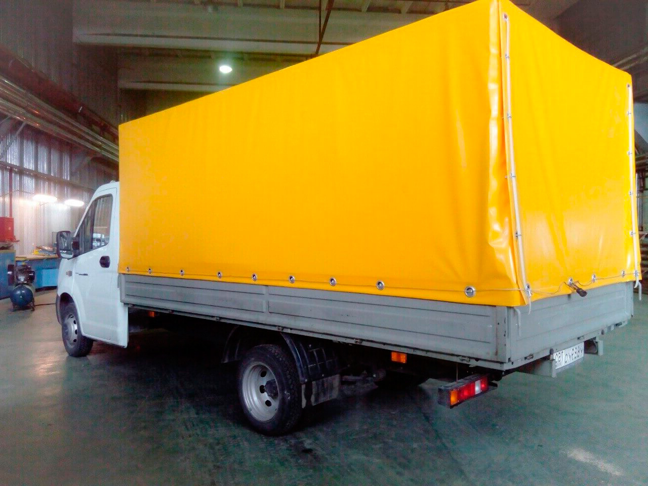 Тент Газель Некст 2-х стороняя усиленная ткань длинна 4.25 м. ширина 2.06 (под металл. борт), прямоугольный, под заводской каркас, высота от пола 1,8 м.